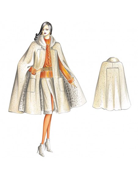 Mantella ad effetto doppio con collo sciallato e allacciatura con alamaro. Consigliabile in tweed.