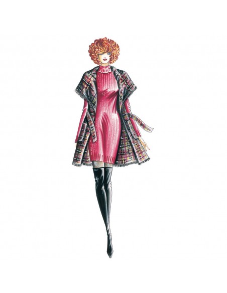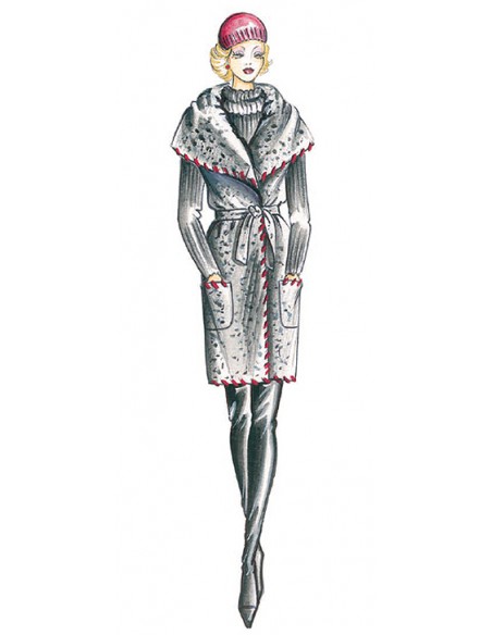 Mantello di linea semidiritta con maniche corte a kimono, ampio collo sciallato, tasche applicate e cintura annodata. Tessuto consigliabile scozzese con frangiatura.
