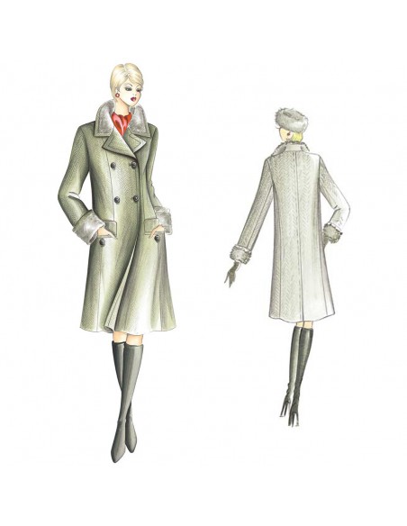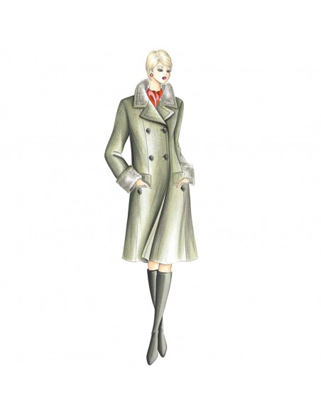 Cappotto classico di linea leggermente svasata, collo e polsi in pelliccia o nappa come i bottoni, tasche interne con alte pattine.