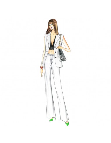 Giacca giovanile da realizzare in seta con interno in tinta contrastante, taglio impero fermato da laccetto. Gonna n. 9412.