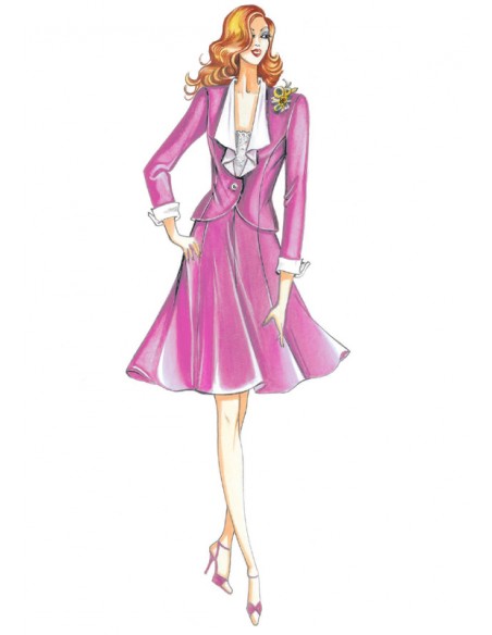 Giacca in crêpe di linea modellata con allacciatura ad un solo bottone gioiello, collo sciallato che forma volant.