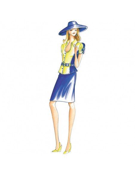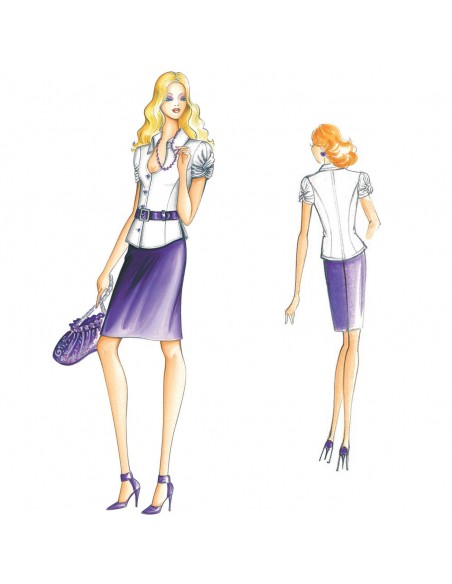 Casacchina di linea modellata con maniche divise in due parti che si incrociano e formano drappeggio. Consigliabile anche in tessuto bicolore.