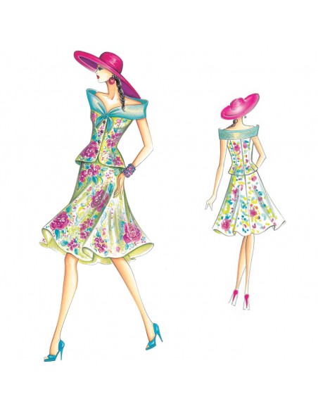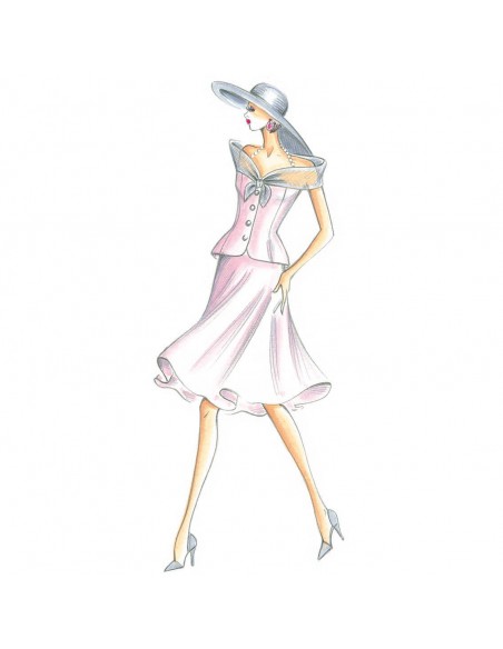Giacchina in raso jacquard di linea attillata con romantica scollatura a stola realizzata in organza e annodata al centro.