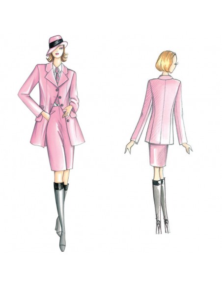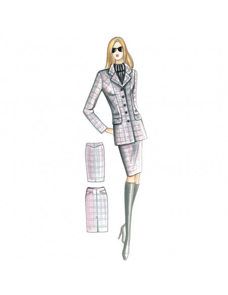 Gonna con motivo di tasche alla francese intere con il fascioncino. Giacca n. 3988.