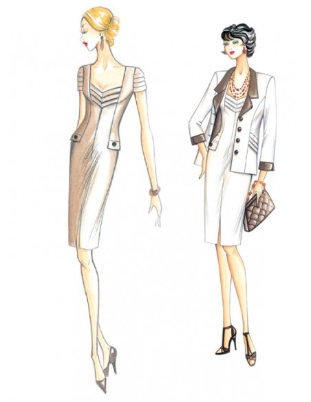 Abito con scollatura a cuore con piegoline come le maniche corte.