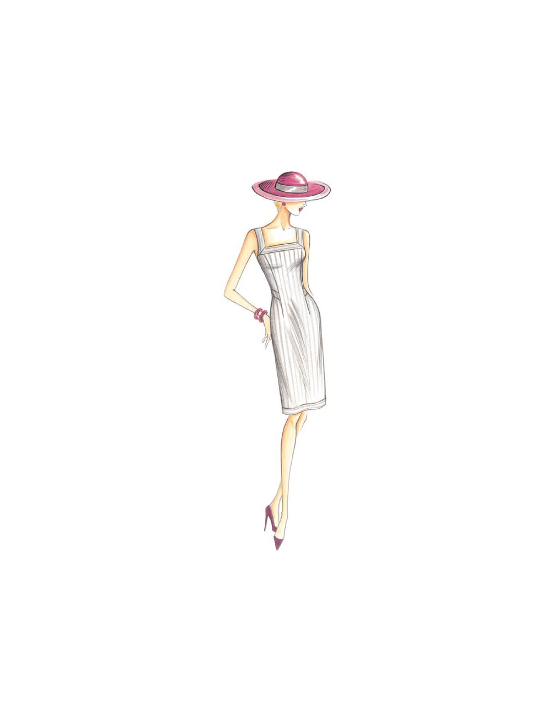 Tubino senza maniche con scollatura quadrata ed orlo profilati da bordo fantasia o ricamato.